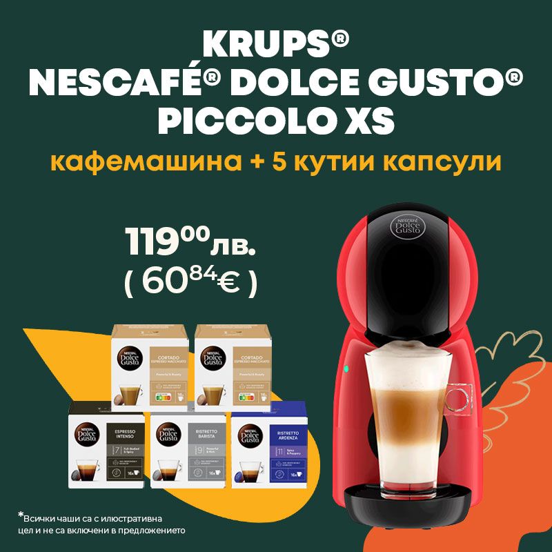 - Купете Кафемашина KRUPS® NESCAFE® Dolce Gusto® Piccolo XS Червен или други продукт от нашата Промо селекция за да получите безплатна доставка.