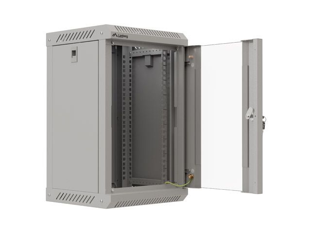 Комуникационен шкаф Lanberg rack cabinet 10" wall-mount 9U/300x300 (flat pack) with glass door grey