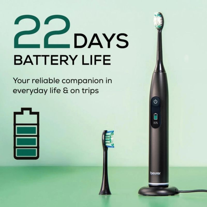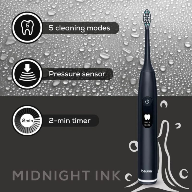 Електрическа четка за зъби Beurer SC 50 midnight ink, Electric Sonic Toothbrush, up to 80,000 mov/min, 5 cleaning programs: Clean, Sensitive, Polish, Gum Care, Whiten, Pressure sensor , 2-min. timer, Incl. 2 toothbrush heads and magnetic charging plate, 2