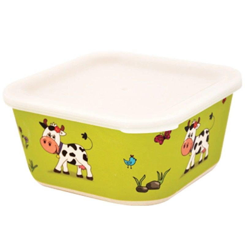 Направена от органични и натурално стерилни бамбукови влакна в комбинация с царевично брашно и смола от аминокиселини. Биоразградима – накиснете във вряща вода, смачкайте и оставете в органичен компост. Процесът на разграждане отнема 1-2 години. Капакът е направен от полипропилен, който не е биоразградим, но е рециклируем. Устойчива в температурен диапазон от - 20°С до 100°С. Задържа топлината по-дълго от керамична кутия.