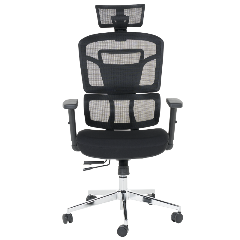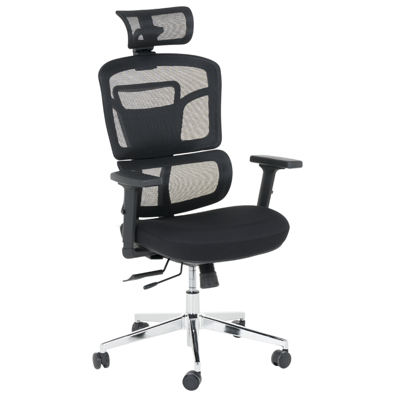 Ергономичният стол Carmen 7589 съчетава стилен дизайн и интелигентна функционалност, за да осигури максимален комфорт по време на дълги работни часове. Облегалката е изработена от дишаща мрежа, която позволява оптимална циркулация на въздуха, а седалката е тапицирана с висококачествена дамаска и запълнена с плътен пенополиуретан за по-меко усещане. Моделът разполага със слайд механизъм за регулиране на дълбочината на седалката, който допринася за правилна стойка и комфорт дори при продължително седене. Освен това разполага с регулируеми 2D подлакътници и 3D подглавник, което позволява персонализиране според индивидуалните нужди. Синхронният механизъм със заключване под ъгъл осигурява стабилност и по-добра опора за тялото. Основата е хромирана – здрава и устойчива на натоварване. Пълна информация за размерите и характеристиките на модела ще намерите в таблицата в таб/поле „Техническа информация“.
