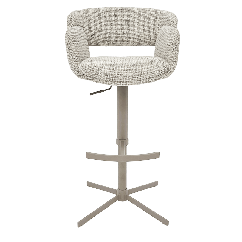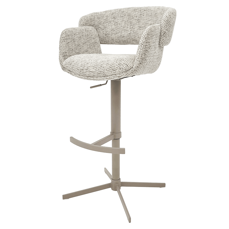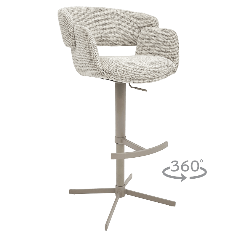 Бар стол PAIDE впечатлява с модерната си визия и усещане за уют, превръщайки всяко пространство в стилно и практично място за релакс. Меката дамаска и покет пружините осигуряват комфорт при продължително седене, а стабилната основа от праховобоядисан метал в цвят крем-перла гарантира надеждност и устойчивост. Благодарение на 360° въртене, регулируемата височина и удобната поставка за крака, моделът предлага персонализирано удобство за всеки потребител. PAIDE е чудесен избор както за модерни кухни и домашни барове, така и за заведения, кафенета и стилни интериори с индустриален или съвременен характер. Пълна информация за размерите и характеристиките на модела ще намерите в таблицата в таб/поле "Техническа информация".