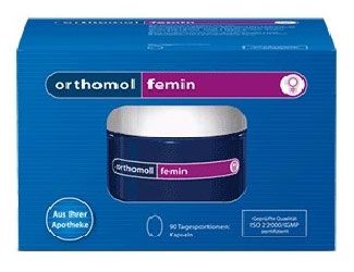 Ортомол® Фемин е хранителна добавка за жени в менопауза, който не съдържа хормони, а е специално разработен спрямо принципите на ортомолекулярната медицина. Съдържа биотин за запазване на нормална кожа и коса, както и селен за запазване на ноктите. С изофлавоноиди от соев екстракт и лигнани от ленено семе, есенциални мастни киселини и коензим Q10 за протичане на лека менопауза.