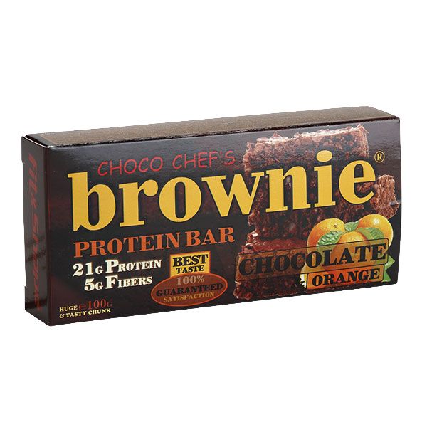 Описание: Протеинов десерт "Choco Chef's Brownie" с шоколад, портокалови корички и подсладител фруктоза. Протеинов десерт с 21g протеин и фибри. Изключително вкусен и допълнително обогатен с ленено семе и ленено масло. Съдържа 100% натурални плодове.