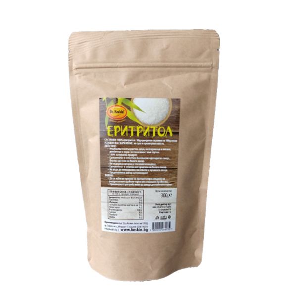 Еритритолът е продукт с естествен произход, получен чрез ферментация на царевица. Еритритолът е захарен алкохол, който се намира в малки количества в много плодове и зеленчуци. Вкусът му е подобен на този на бялата захар. Той няма калории и гликемичен индекс, защото има различен метаболизъм от захарта в човешкото тяло. Това означава, че нашият еритритол няма влияние върху нивата на кръвната захар и следователно е подходящ и за диабетици.