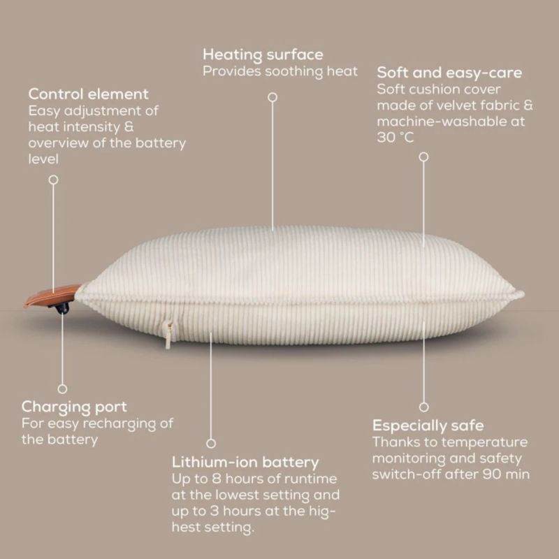 Начало Beurer Термоподложка Beurer HK 77 Heaty cashmere-creme; lithium-ion battery; Soft velvet cushion cover machine-washable at 30°C; 3 temperature settings; Fast heating; BSS; 45(L)x45(W) cm