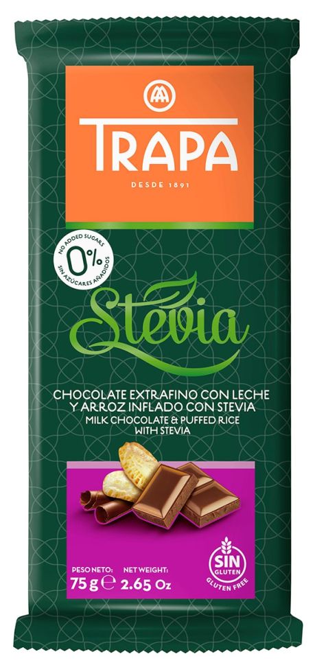 Шоколад, млечен с екструдиран ориз и стевия, “Трапа”