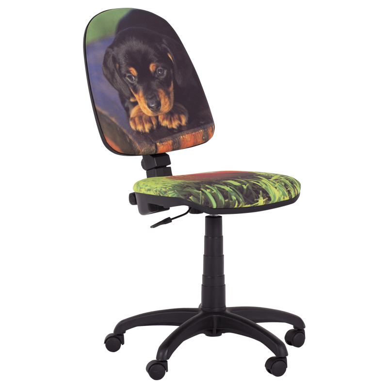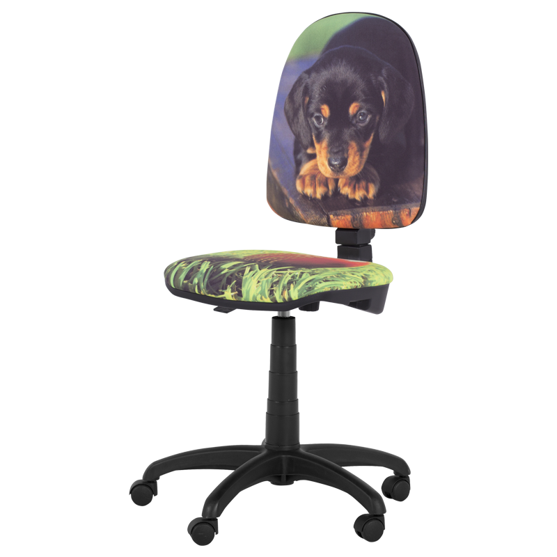 Детски стол Prestige - куче е удобен и функционален стол с качествена дамаска. Акцент при стола е апликацията на дамаската, която е със снимка на куче и пасва изключително добре на цветния интериор на детската стая. Пълна информация за размерите и характеристиките на модела ще намерите в таблицата в таб/поле "Техническа информация".