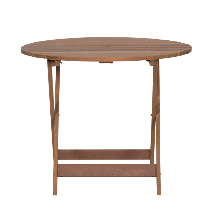 Сгъваема дървена градинска маса ELIAS е практично и стилно решение за градината или терасата. Краката и кръглият плот са изработени от тропическо дърво Meranti с топъл цвят, който създава усещане за уют. Моделът е с отвор за чадър, за да имате сянка в най-горещите летни дни. За да разтегнете модела, трябва да развиете болтовете от двете страни на краката. Пълна информация за размерите и характеристиките на модела ще намерите в таблицата в таб/поле "Техническа информация".