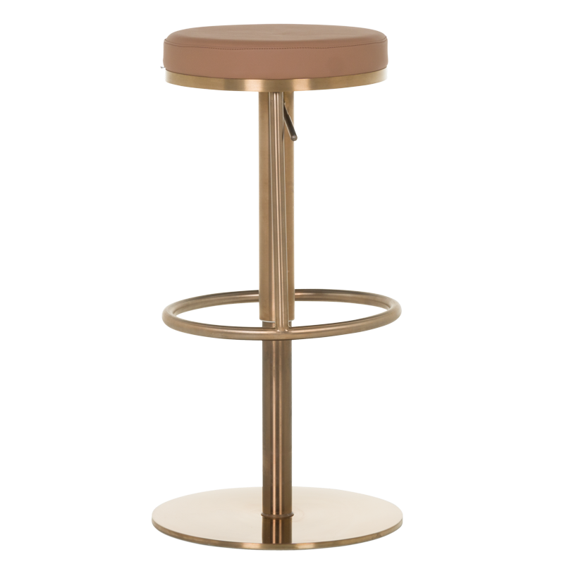 Бар столът BEZU е символ на лукс и изтънченост, съчетавайки модерен дизайн с максимален комфорт. Тапициран във висококачествена еко кожа, той предлага изключителна мекота и стил, придавайки на интериора усещане за елегантност и грижа към детайла. Основата е изработена от иноксова стомана с луксозно полирано покритие със златист финиш, което придава на стола не само издръжливост, но и бляскаво визуално присъствие. Освен впечатляващия си външен вид, BEZU предлага практичност, като в най-ниската си позиция той може да се използва като удобна табуретка. С въртене на 360 градуса и регулируема височина, този стол е перфектният избор за всеки изискан интериор, където стилът и функционалността се преплитат. Пълна информация за размерите и характеристиките на модела ще намерите в таблицата в таб/поле "Техническа информация".