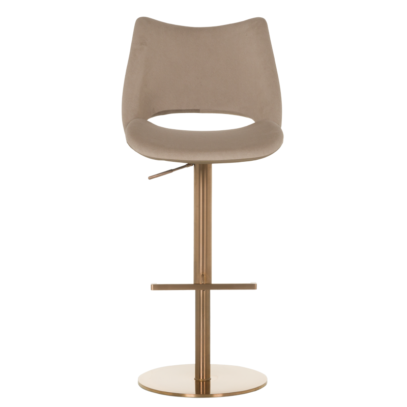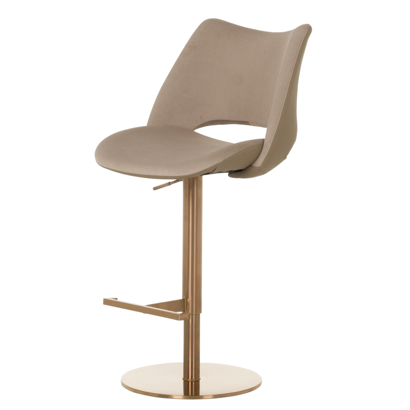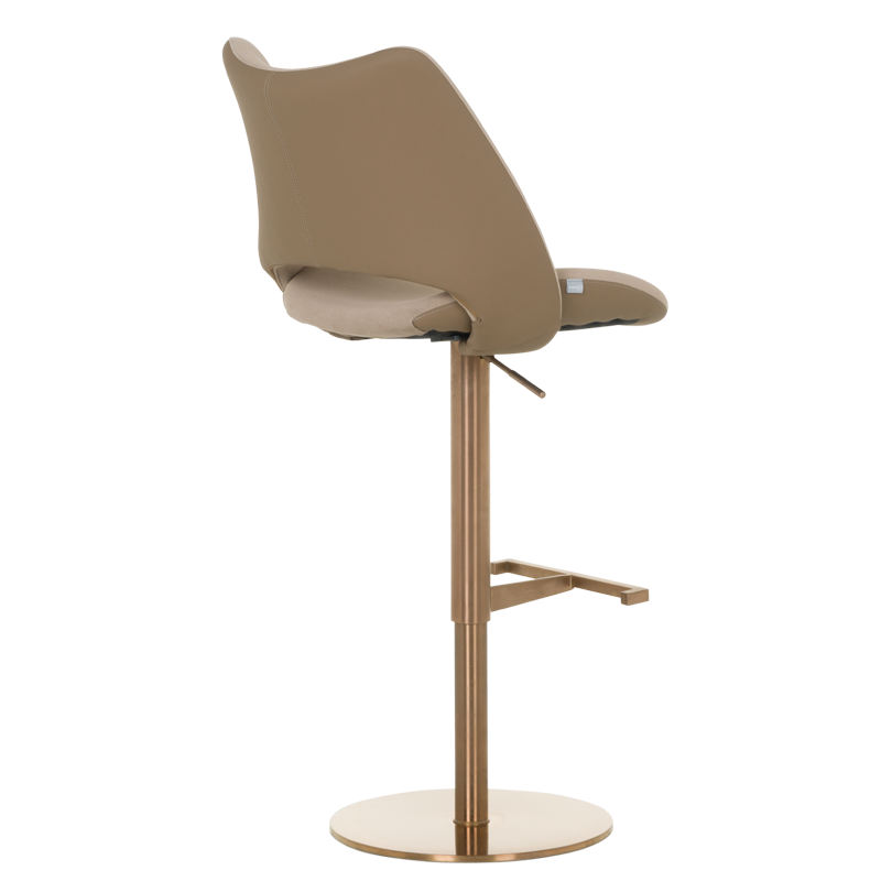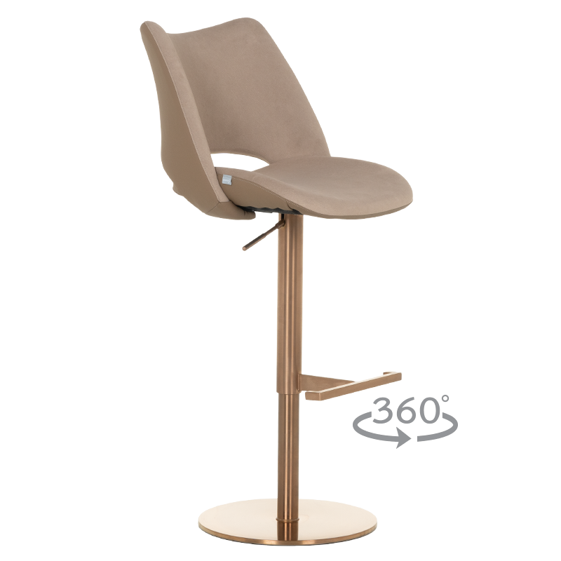Бар стол MARIRA съчетава стил и комфорт с модерна функционалност. Тапициран в луксозна еко кожа в изтънчен капучино цвят, този стол ще се впише перфектно във всеки съвременен интериор. Основата от полирана неръждаема стомана осигурява стабилност и издръжливост, докато функцията за въртене на 360 градуса добавя допълнително удобство. Столът разполага с газов амортисьор, позволяващ лесно регулиране на височината за персонализиран комфорт, и издържа натоварване до 120 килограма. Подходящ за барове, кухни или дневни пространства, този бар стол е перфектната комбинация от стил и практичност. Пълна информация за размерите и характеристиките на модела ще намерите в таблицата в таб/поле "Техническа информация".