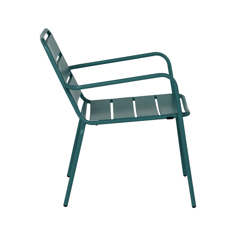 Метален градински стол SAKI ще внесе настроение и стил във всяко външно пространство. Със своята комфортна форма и подлакътници, той е чудесен избор за отдих на терасата, в градината или около маса на открито. Изработен от метал с антикорозионно покритие, столът е устойчив на атмосферни влияния и лесен за поддръжка. Столът може да се стифира, което улеснява съхранението и спестява място, когато не се използва. Това го прави особено практичен за сезонна употреба или при нужда от повече бройки на ограничена площ. Пълна информация за размерите и характеристиките на модела ще намерите в таблицата в таб/поле "Техническа информация".