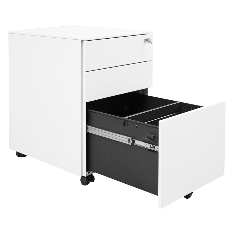 Офис контейнер Carmen CR-1814 ZH разполага с 3 чекмеджета, включително долно чекмедже с водачи за висящи папки, и е снабден с централно заключване с ключ за сигурност. Благодарение на компактния си размер и колелца, е изключително удобен за позициониране под или до бюро. Горните чекмеджета са подходящи за офис принадлежности, а долното – за документи и папки. Моделът се предлага сглобен, с което отпада нуждата от монтаж. Пълна информация за размерите и характеристиките на модела ще намерите в таблицата в таб/поле "Техническа информация".