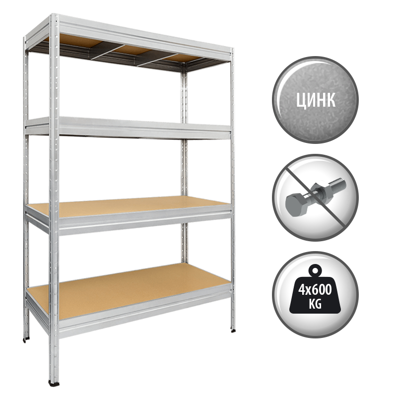 Carmen CR-1024 е стабилен стелаж от галванизиран метал с размери 180x120x60 см. С негова помощ ще подредите килера или гаража у дома, както и работното си пространство. Разполага с 4 МДФ рафта, всеки от които може да издържа на максимално натоварване от 600 кг. Благодарение на безболтовия монтаж височината на рафтовете може да бъде лесно регулирана и променяна. Пълна информация за размерите и характеристиките на модела ще намерите в таблицата в таб/поле "Техническа информация".