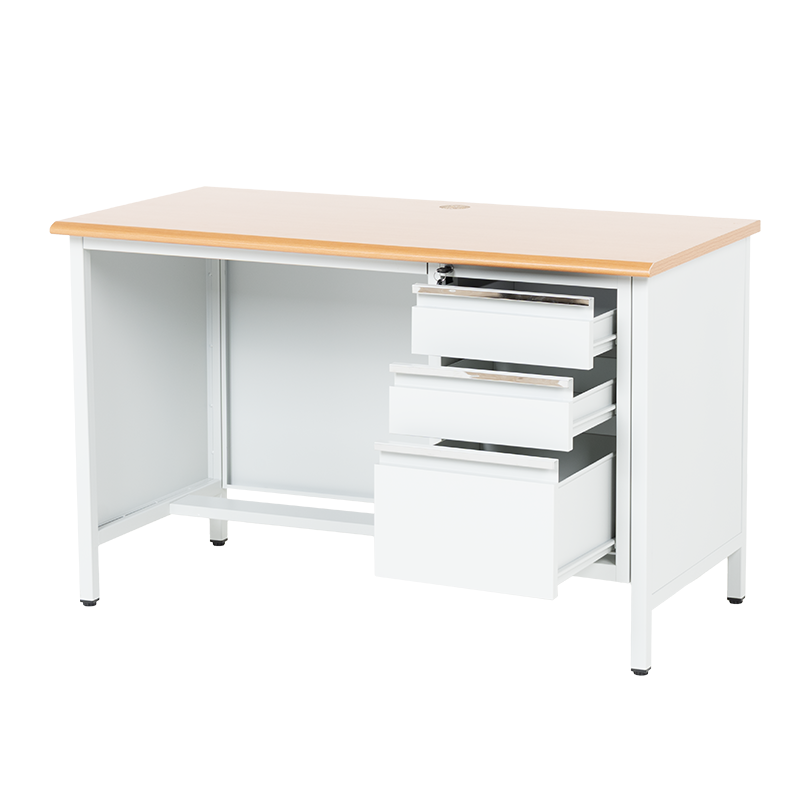 Метално бюро Carmen CR-1314 K е здраво и функционално решение за офис, работилница или учебна среда. Изработено от праховобоядисан метал с плот от МДФ (120х60 см), то предлага надеждност и удобство. Разполага с три чекмеджета със заключване за сигурно съхранение на документи и принадлежности. Пълна информация за размерите и характеристиките на модела ще намерите в таблицата в таб/поле 'Техническа информация'.