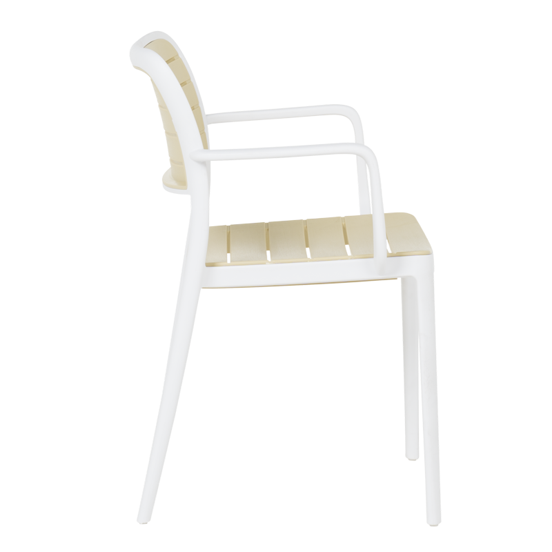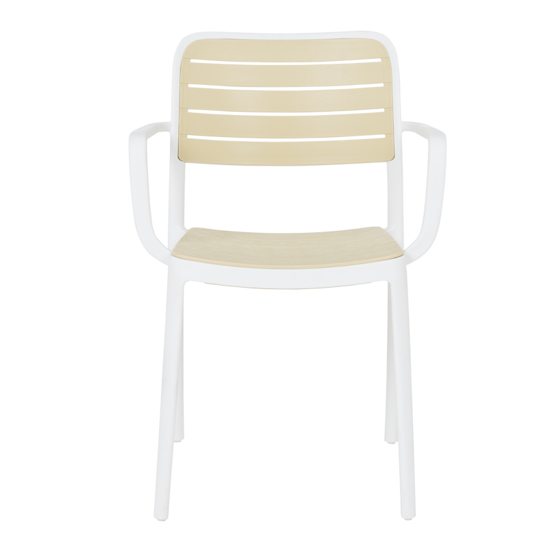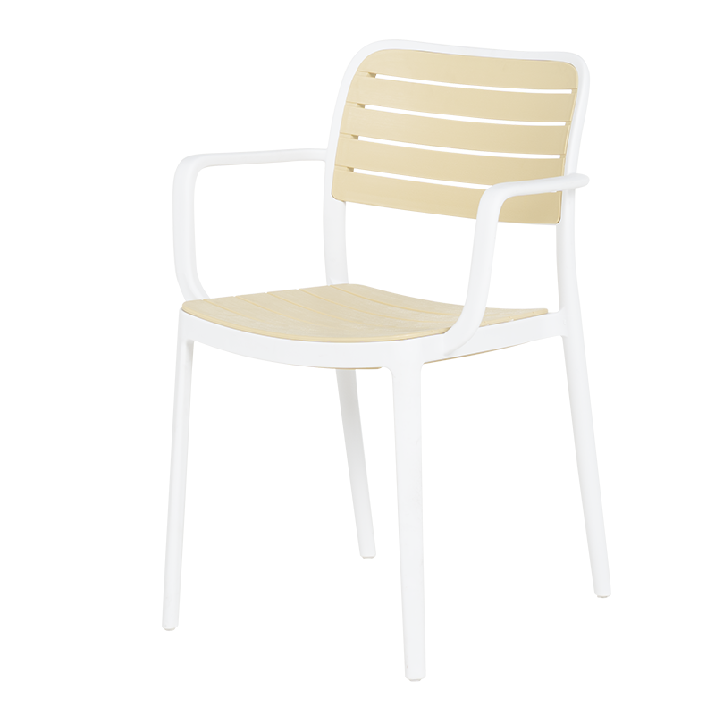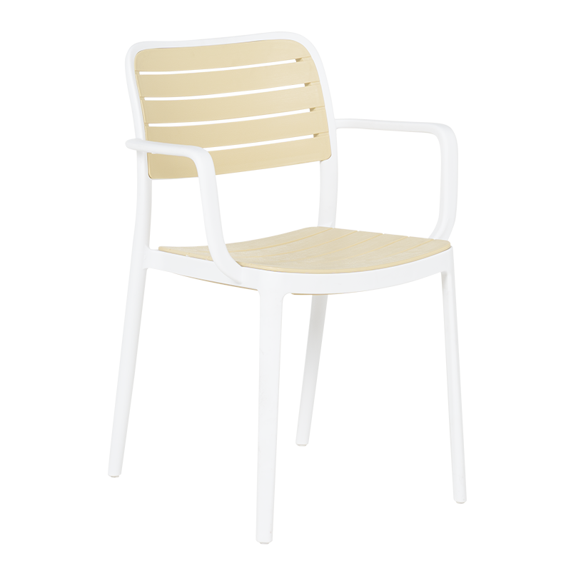 TEMARA е практичен и удобен градински стол с подлакътници, подходящ за свободното време в градината или за освежаваща напитка на терасата през топлите месеци. Този модел е едновременно лек и стабилен. Изработен е от устойчив и лесен за почистване материал. Пълна информация за размерите и характеристиките на модела ще намерите в таблицата в таб/поле 'Техническа информация'.