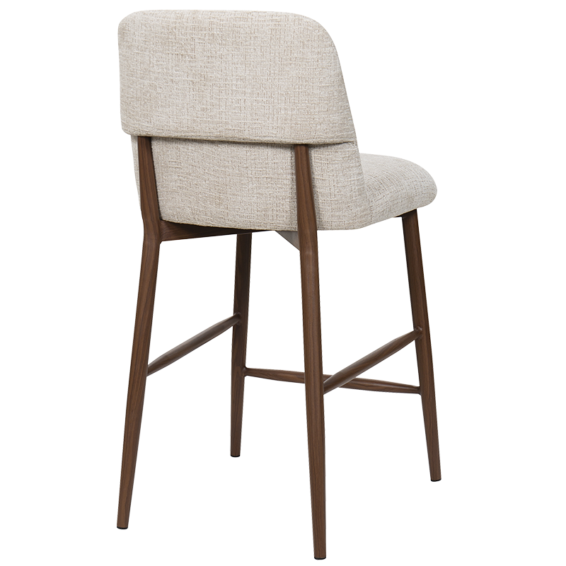 Бар стол BANBAR впечатлява с елегантен дизайн и изчистени линии, които съчетават модерна естетика с комфорт. Извивките на седалката и облегалката, тапицирани с фина дамаска, обгръщат тялото и създават усещане за мекота и стабилност. Краката от праховобоядисан метал с дървесен декор придават топло и естествено излъчване, същевременно осигурявайки здравина и устойчивост. BANBAR е перфектен избор за бар, кухня или трапезен кът с характер и стил. Пълна информация за размерите и характеристиките на модела ще намерите в таблицата в таб/поле 'Техническа информация'.