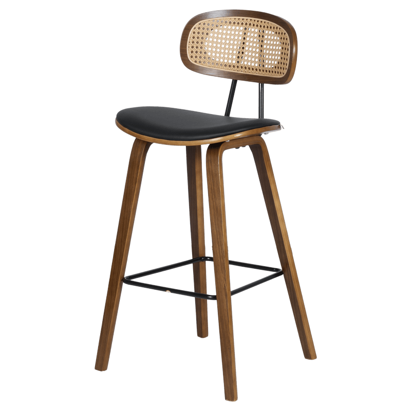 Бар стол Carmen 4029 съчетава елегантност и естествен чар в модерен ретро стил. Седалката е изработена от еко кожа и дърво, осигуряваща комфорт и издръжливост при ежедневно ползване. Краката са дървени, стабилни и стилно извити, а степенката от праховобоядисан метал допринася за удобството при седене. Облегалката е изработена от дърво и изкуствен ратан, придавайки лек и изискан акцент на дизайна. Пълна информация за размерите и характеристиките на модела ще намерите в таблицата в таб/поле 'Техническа информация'.