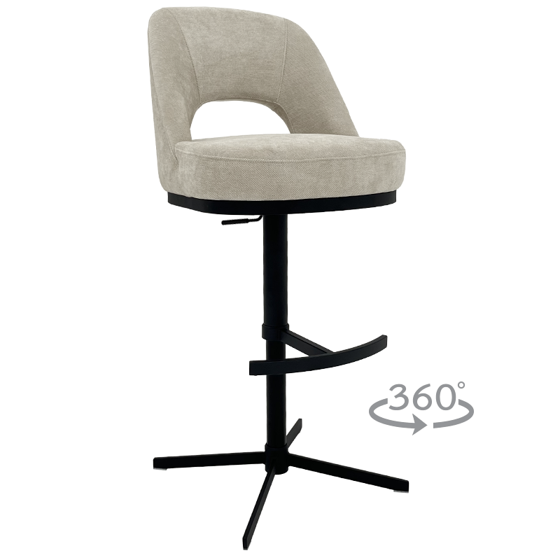 Бар стол KUNDA впечатлява с изискан силует и комфорт, създаден да превърне всяко сядане в приятно изживяване. Седалката с покет пружини и меката дамаска обгръщат тялото с деликатна подкрепа, а праховобоядисаната метална основа добавя стабилност и модерно усещане. Функциите за 360° въртене и регулиране на височината осигуряват индивидуален комфорт, допълнени от елегантна поставка за крака. Прекрасен акцент за стилни кухни, бар плотове и дизайнерски интериори. Пълна информация за размерите и характеристиките на модела ще намерите в таблицата в таб/поле 'Техническа информация'.