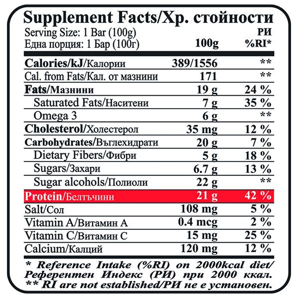 Protein/ Белтъчини: 21g (42%)