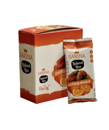 Съставки: Фурми 72%, бадеми, кокосови стърготини, портокалово масло (органично) -0,01%, сол. Може да съдържа следи от костилки.