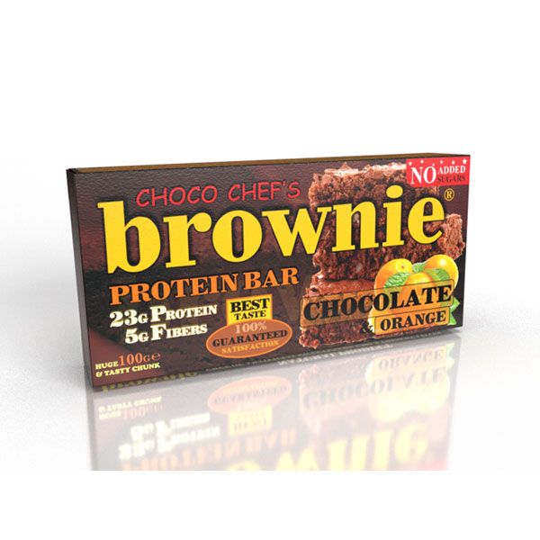 Описание: Протеинов десерт "Choco Chef's Brownie" с шоколад, портокалови корички и подсладител фруктоза. Протеинов десерт с 21g протеин и фибри. Изключително вкусен и допълнително обогатен с ленено семе и ленено масло. Съдържа 100% натурални плодове.