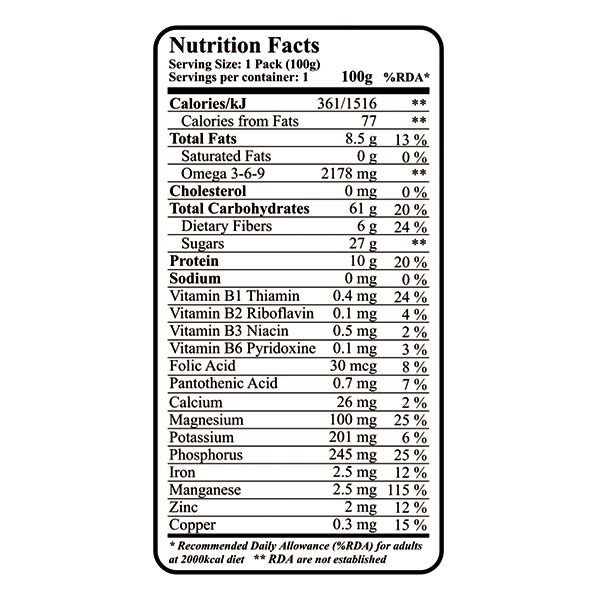 Предимства на продукта: *За спортисти; *Богат на Омега 3-6-9; *Богат на фибри; *Без животински продукти и следи; *Веган продукт; *Без подсладители; *Без аспартам; *Без транс мазнини; *Без холестерол; *Без ГМО; Произведен в България.