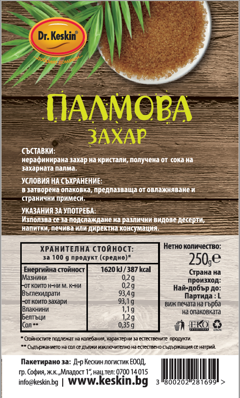 - Купете Палмова захар Dr. Keskin, 250 гр. или други продукт от нашата Промо селекция за да получите 10% отстъпка.