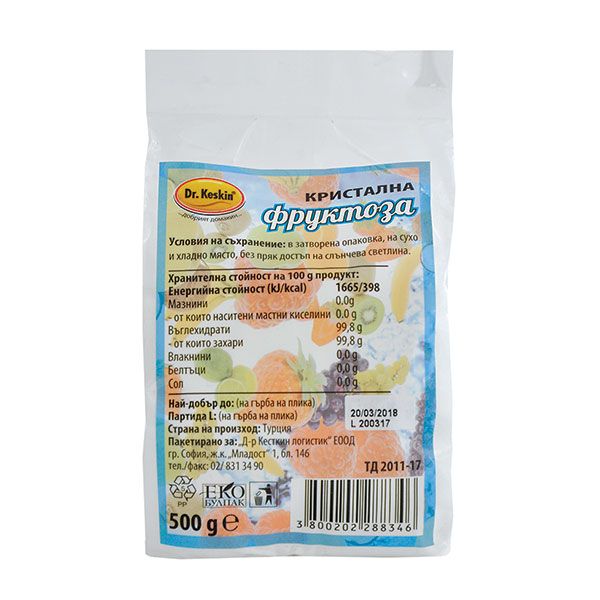 - Купете Фруктоза кристална Dr. Keskin, 500гр или други продукт от нашата Промо селекция за да получите 10% отстъпка.