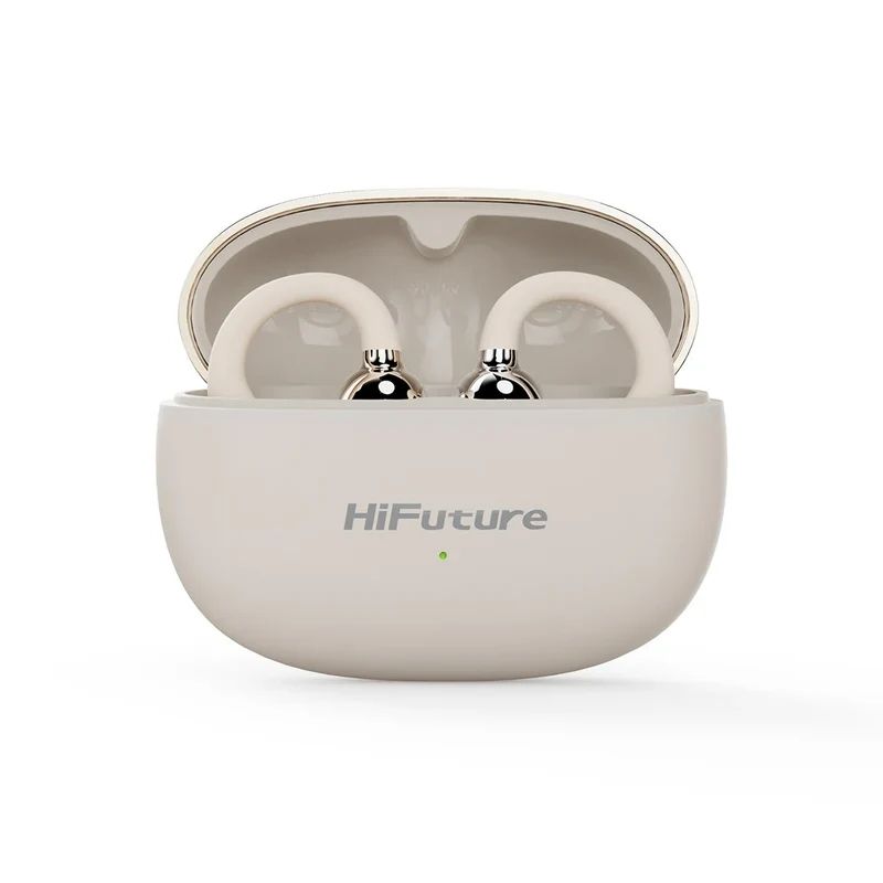 Слушалки HiFuture FlexClip Champagne Gold, Open Ear Comfort, Bluetooth 5.4, 4 Mics ENC Calling System, Playtime up to 30 Hours, IPX5 Waterproof, 12mm Driver Bass Boost