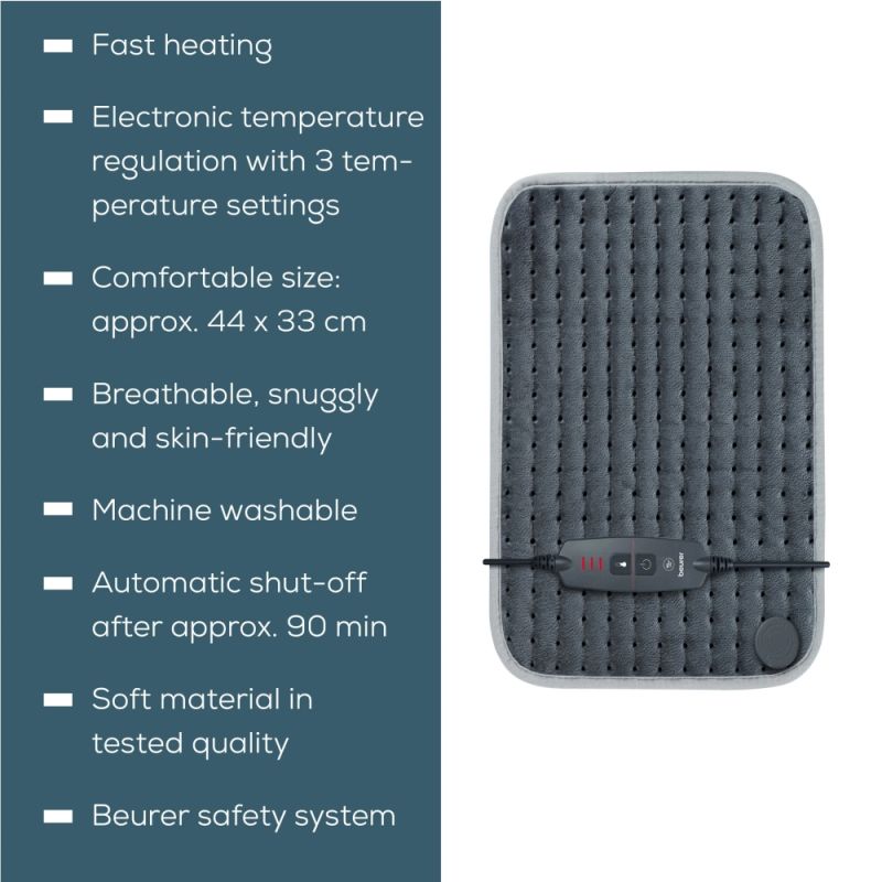 Начало Beurer Термоподложка Beurer HK SE Cosy and soft heat pad; 3 temperature settings, automatic switch off after 90 min; washable on 30°; Gray