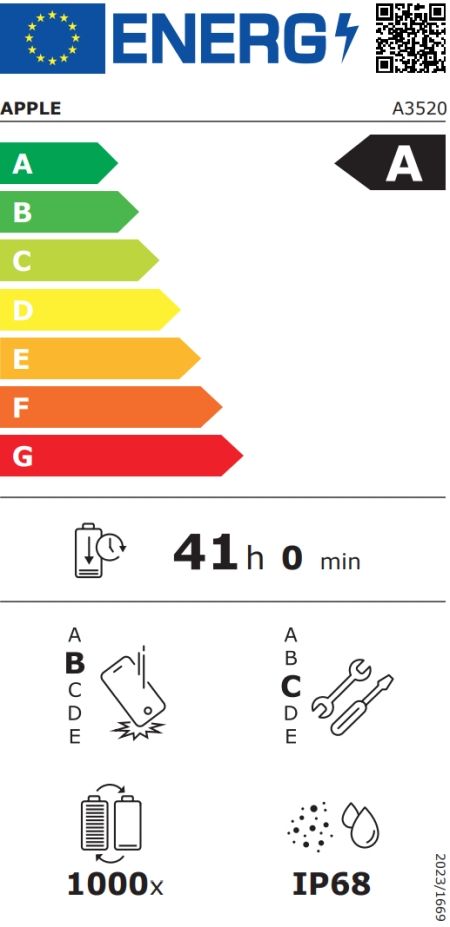 Батерия, mAh:Li-Ion 3692 mAh, Charging: Wired, PD3.2, AVS, 50% in 20 min; 25W wireless MagSafe/Qi2; 4.5W reverse wired