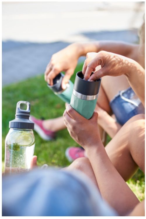 Други:With double-walled stainless-steel liner; Opens with the press of a button; 360° drinking from all sides; 100% leak-proof; Dishwasher safe; Closure can be taken apart for easy cleaning