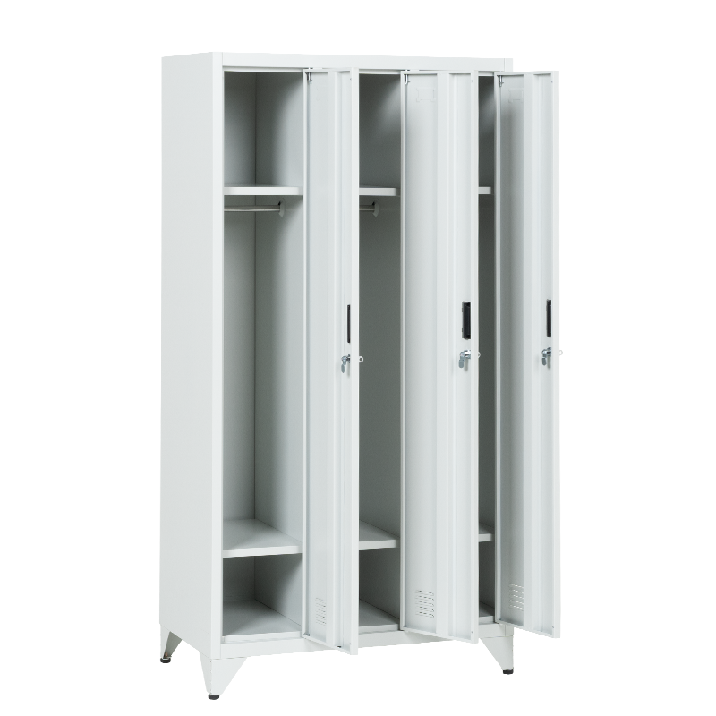 Металният шкаф Carmen CR-1295 J се състои от 3 отделения за съхранение на багаж. Моделът е изработен от праховобоядисан метал с гладко покритие. На вратите има вентилационен отвор и място за поставяне на етикет. Шкафчетата се затварят посредством заключващ механизъм с помощта на катинар. Катинарите не са включени в цената. Пълна информация за размерите и характеристиките на модела ще намерите в таблицата в таб/поле "Техническа информация".