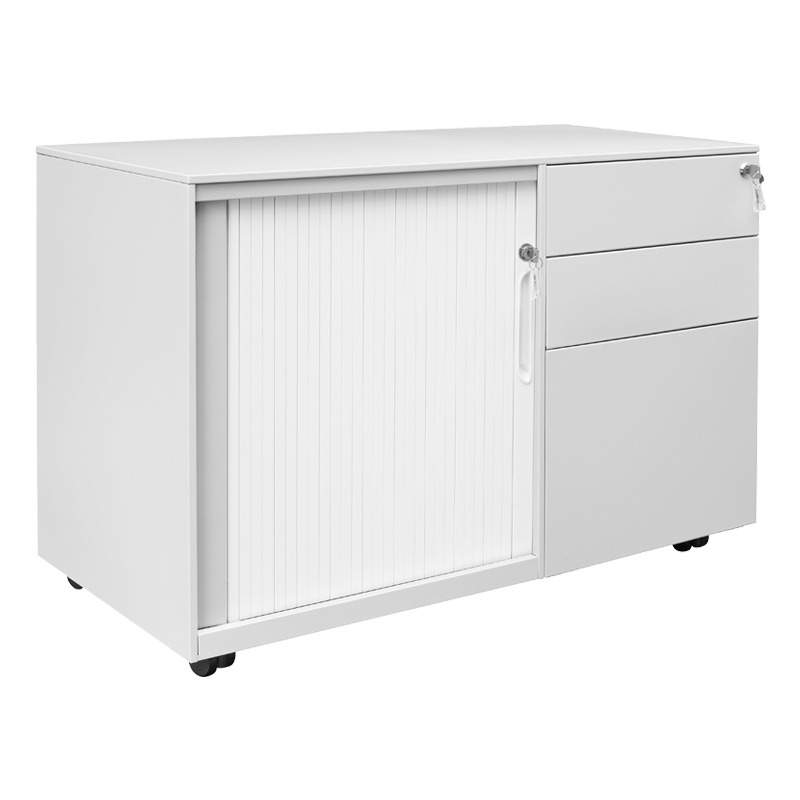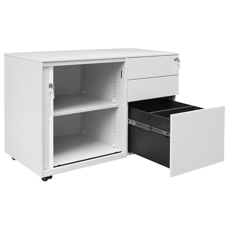 Кардекс Carmen CR-1852 J разполага с 2 чекмеджета и отделение с плъзгаща врата, като всяка зона е снабдена с отделно заключване с ключ. Вътрешният шкаф е оборудван с регулируеми рафтове, осигуряващи адаптивно пространство за документи и консумативи. Плъзгащата врата улеснява достъпа в тесни пространства, а компактният дизайн е подходящ за поставяне под или до бюро. Пълна информация за размерите и характеристиките на модела ще намерите в таблицата в таб/поле "Техническа информация".