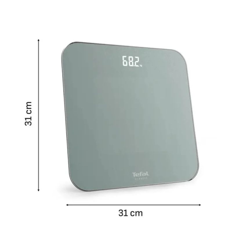 Везна Tefal PP1903V0 Classic 3 Euclyptus Metal, glass platform (31x31cm, 5mm), 180Kg / 100g, display (75x25), back light display, 3 x AAA battery included